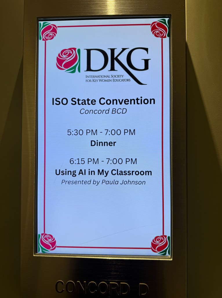First came the heart-shaped oversized glasses. I pulled them out early in the speech, plopped them on my face, and told the room, “This is the face of every teacher. As teachers, we want to provide a caring environment that views the student as a child of hope with dreams that can be realized. AI cannot use these glasses as a tool to lighten a mood with students or staff, but we can. ”